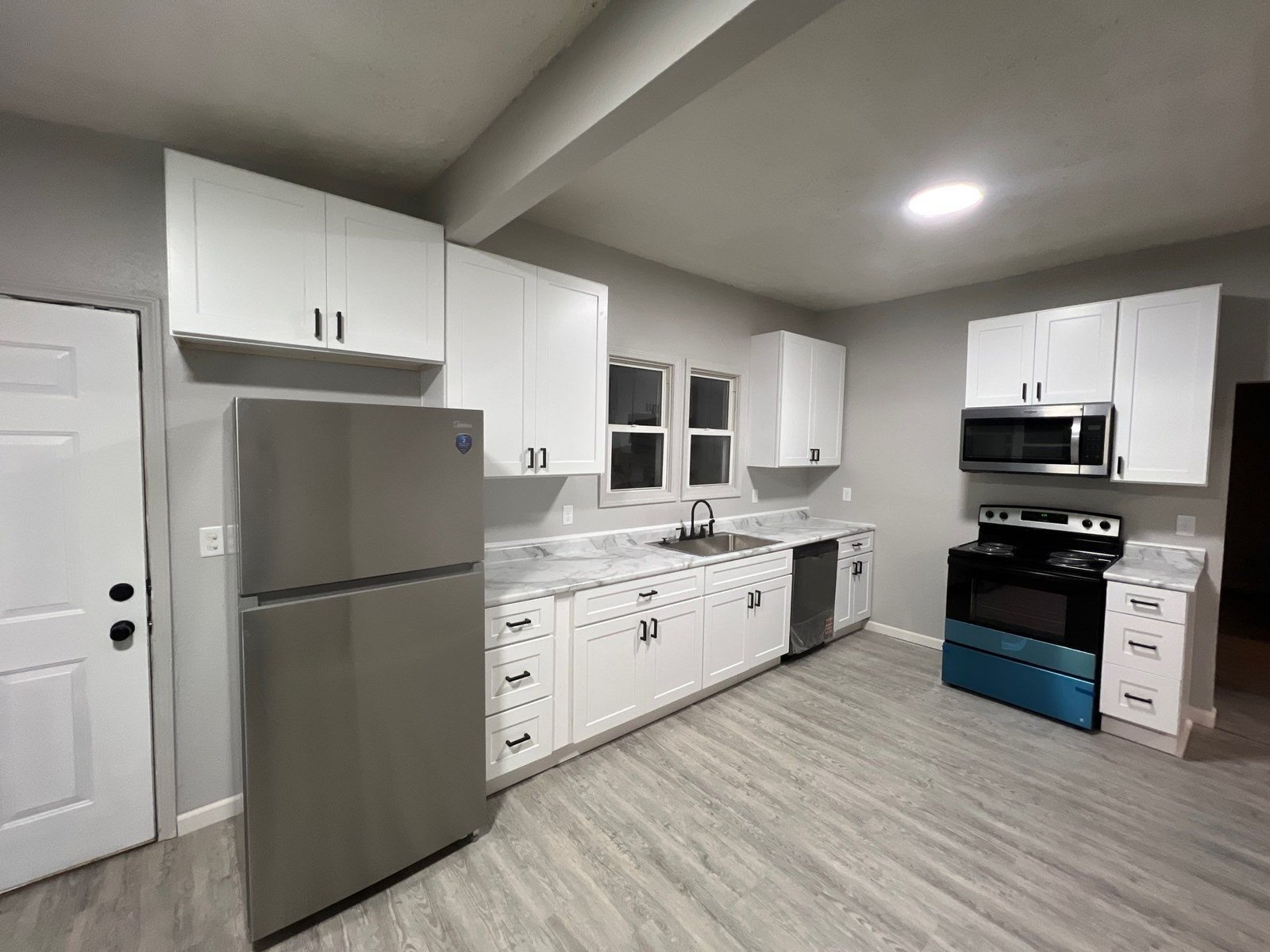 The home features new flooring, fresh paint, and modern finishes throughout. The spacious living room connects seamlessly to the kitchen, which includes updated appliances and plenty of storage. Each bedroom is well sized and filled with natural light, creating a warm and inviting atmosphere.